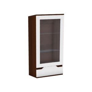 Шкаф подвесной Браво Б3 включает в себя две стеклянных полки за стеклянной дверцей и выдвижной ящик, является отличным решением для вашей гостиной комнаты или прихожей. Цветовая гамма и дизайнерское решение довольно универсальны для размещения в разных стилях интерьера.