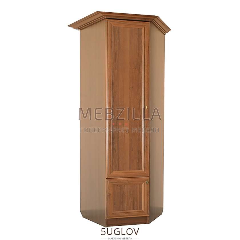 Большой угловой шкаф №18 Диана Люкс позволит с максимальной эффективностью использовать угол вашей гостиной комнаты и разместит внутри себя за глухими дверцами не только вещи на верхней большой полке - также доступны четыре небольшие полки в платяном отделении, которое снабжено перекладиной для хранения верхней одежды на вешалках-плечиках. В нижней части шкафа имеется еще одно большое и удобное место для хранения вещей в виде отдельного шкафчика. Конструкция углового шкафа №18 из состава модульной гостиной Диана Люкс является универсальной, т.е. по желанию может быть собрана как на левую, так и на правую стороны открывания дверец шкафчиков.