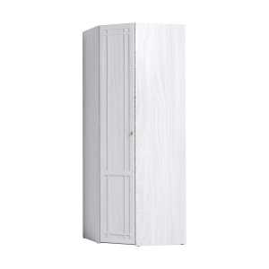 Вместительный Шкаф угловой Sherlock состоит из стеллажа с четырьмя узкими полками, одной широкой полки сверху и стационарной штанги для вешалок. Фасад двери можно выбрать с зеркалом. Шкаф содержит весь необходимый функционал для большой семьи.
