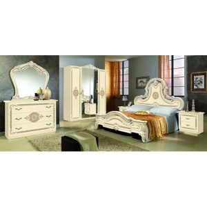 Центром этой спальни является роскошная двуспальная кровать с ортопедическим основанием. Дополнить функциональность кровати сможет подъёмный механизм, который создает дополнительное место для хранения вещей, что очень удобно для небольших квартир. Спальный комплект Леди создаст идеальное место для отдыха в вашем доме.