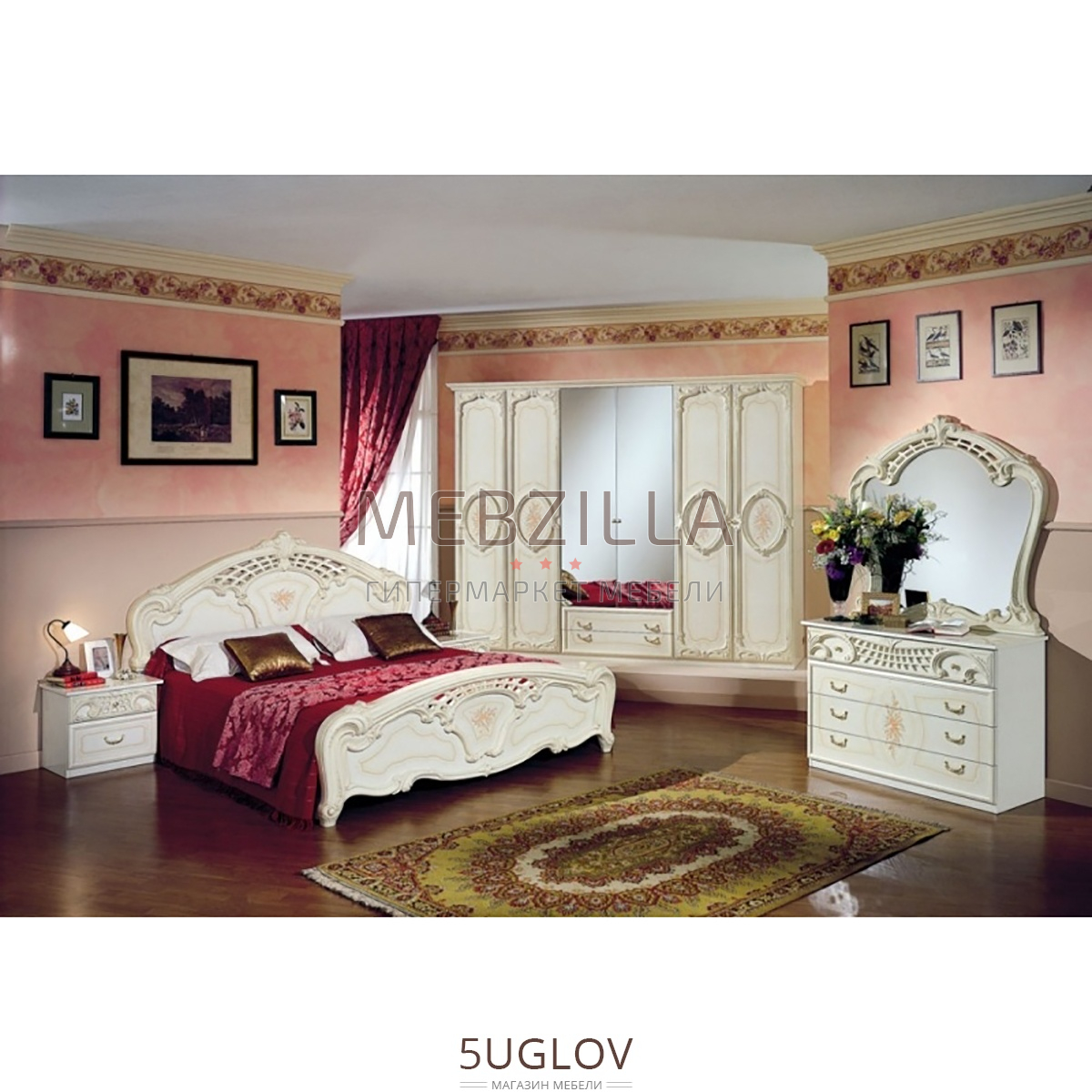 - Кровать двуспальная Роза, без матраса, Ш1830 х Г2150 х В1250, 1 шт