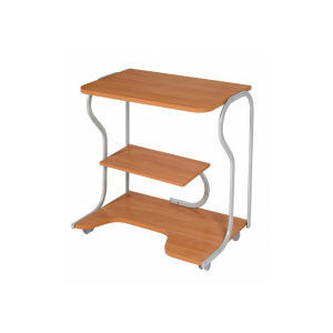 Удобный и практичный компьютерный столик Практик-4 состоит из небольшой столешницы и двух полок под ней. Всё это закреплено на прочном металлическом каркасе с колёсиками. На столе легко разместится клавиатура и монитор диагональю до 21 дюйма, средняя полка подойдёт для установки принтера, а на нижней полке предусмотрено место для системного блока. Подойдёт для небольших комнат, занимая совсем немного места, легко передвигается и прекрасно ставится к дивану или кровати.