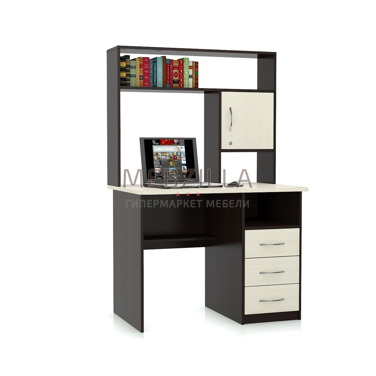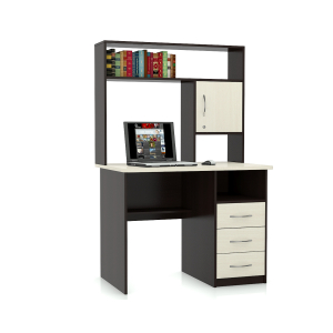 Практичный компьютерный стол С-МД-СК9 состоит из удобной столешницы, надстройки с двумя открытыми и одной закрытой нишей, образующих нишу для монитора размером 650х700х570 мм. Сбоку под столешницей расположилась тумба с тремя вместительными выдвижными ящиками и открытой нишей над ними. Компьютерный стол С-МД-СК9 - отличное дополнение для интерьера кабинета, детской или библиотеки.