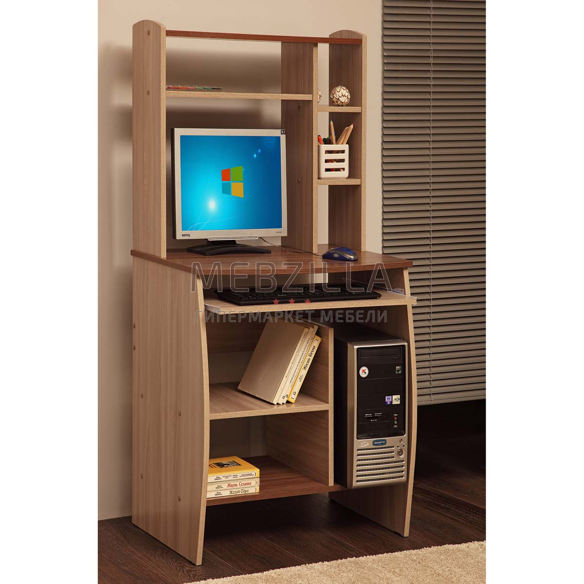 Практичный и функциональный компьютерный стол Юпитер-М01 состоит из 6 открытых полок и одной полки для компьютера. Также есть выдвижная панель для клавиатуры.