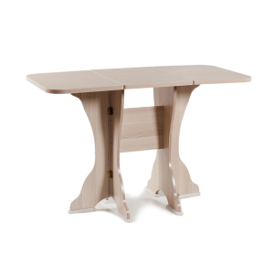 Удобный складной обеденный стол СКР-2 состоит из устойчивого каркаса из ламинированной плиты ДСП и столешницы из специального термопластика, которая складывается с двух сторон, благодаря чему изделие становится гораздо компактнее. Углы столешницы для безопасности закруглены, а на ножках предусмотрены пластиковые подпятники для сохранности пола. Легкий и небольшой складной обеденный столик станет прекрасным дополнением для вашей кухни.