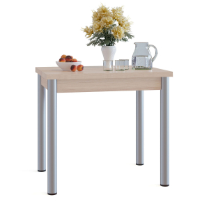 Компактный обеденный стол Сокол СО-1м изготовлен в современном стиле, металлические ножки создают эффект массивности и надёжности. Модель оборудована раскладным механизмом, который при необходимости увеличивает величину стола. Чтобы разложить столешницу, нужно отодвинуть её, повернуть на 90 градусов и раскрыть как книжку. Изделие изготовлено из ЛДСП толщиной 16 мм, края обработаны кромкой ПВХ толщиной 2 мм и 0,4 мм.