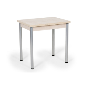 Удобный обеденный стол Ирис состоит из устойчивого каркаса из ламинированной плиты ДСП и столешницы из специального термопластика, с поворотно-раскладным механизмом трансформации, благодаря чему изделие увеличивает свои размеры. На металлических ножках предусмотрены пластиковые подпятники для сохранности пола. Легкий и небольшой раскладной обеденный столик станет прекрасным дополнением для вашей кухни.