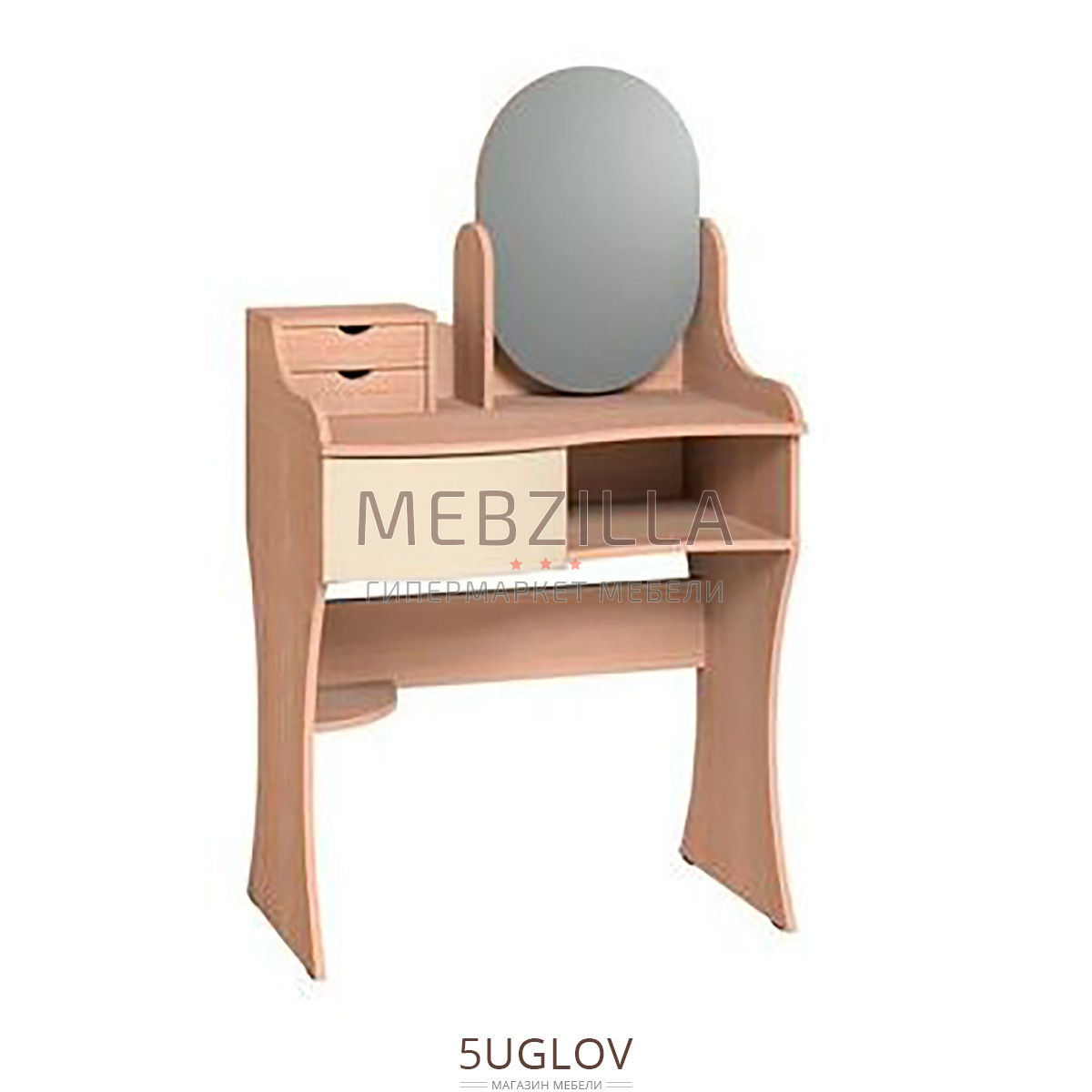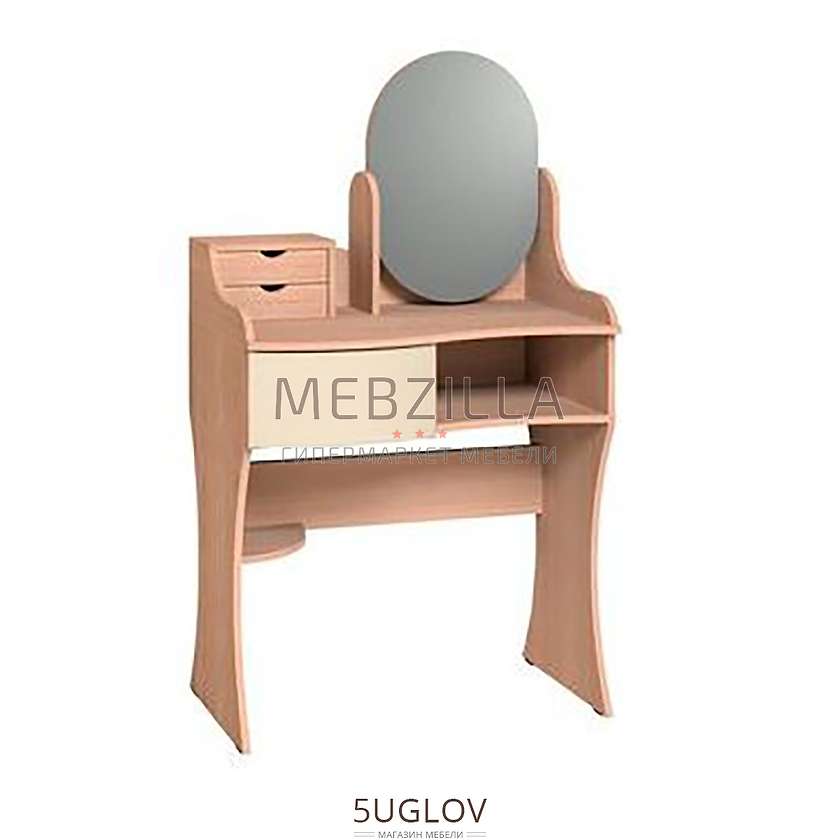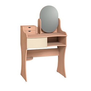 Туалетный стол АМЕЛИ состоит из одного выдвижного ящика и открытой полки, расположенных под столешницей, двух малых выдвижных ящиков, расположенных на столешнице, одной открытой закруглённой полки, расположенной снизу, под выдвижным ящиком и вращающего зеркала. Этот стол будет гармонично смотреться в вашей спальне АМЕЛИ.