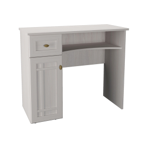 Туалетный стол Sherlock состоит из закрытой полочки за глухой дверцей, выдвижного ящика и одной открытой вогнутой полки под столешницей. Этот стол будет гармонично смотреться в вашей спальне Sherlock.