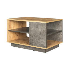 Стильный и функциональный стол журнальный 12.01 Арчи станет отличным выбором для обустройства гостиной комнаты. Под столешницей расположены открытые полки для хранения. Входит в состав модульной гостиной Арчи.