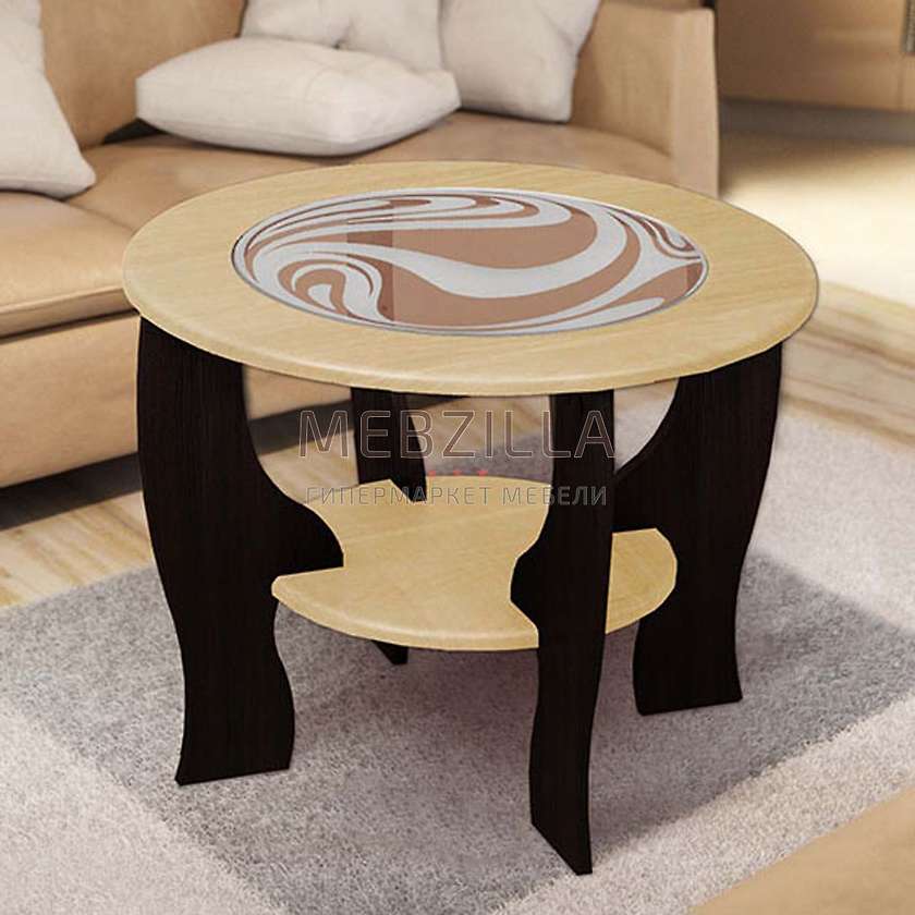 Стол журнальный со стеклянной вставкой изготовлен в современном стиле, который прекрасно дополнит интерьер гостиной. Он включает в себя одну полку на которой можно разместить журналы, книги или мелкие предметы, которые необходимо держать под рукой.