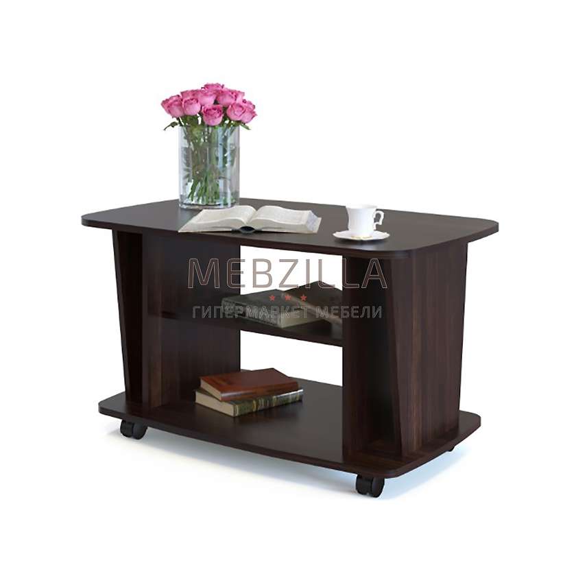 Стол журнальный СЖ-3 изготовлен в современном стиле, который прекрасно дополнит интерьер гостиной. Изделие оборудовано двумя полками для размещения необходимых вещей либо журналов. Так же имеются колесики для легкого передвижения стола.