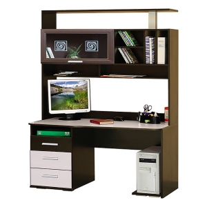 Центр 14 Статус - это рабочий центр модульной системы. Большая рабочая поверхность позволит разместить не только компьютер или ноутбук, но и канцелярские принадлежности. Восемь открытых полок вместят в себя все необходимо - книги, журналы, папки с документами и т.д. На стеклянную дверцу витрины нанесен рисунок методом пескоструйной обработки. Также под рабочей поверхностью разместились три выкатных ящика и подставка для системного блока. Крышка и столешница центра №14 изготовлены из ЛДСП толщиной 22 мм, ручки дверец - из металла, а дверцы снабжены газовыми кронштейнами и амортизаторами.