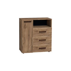 Тумба для обуви Nature состоит из открытой ниши, трех выдвижных ящиков и двух двух закрытых полок за глухой дверцей. Такая тумба будет хорошим дополнением к прихожей Nature.