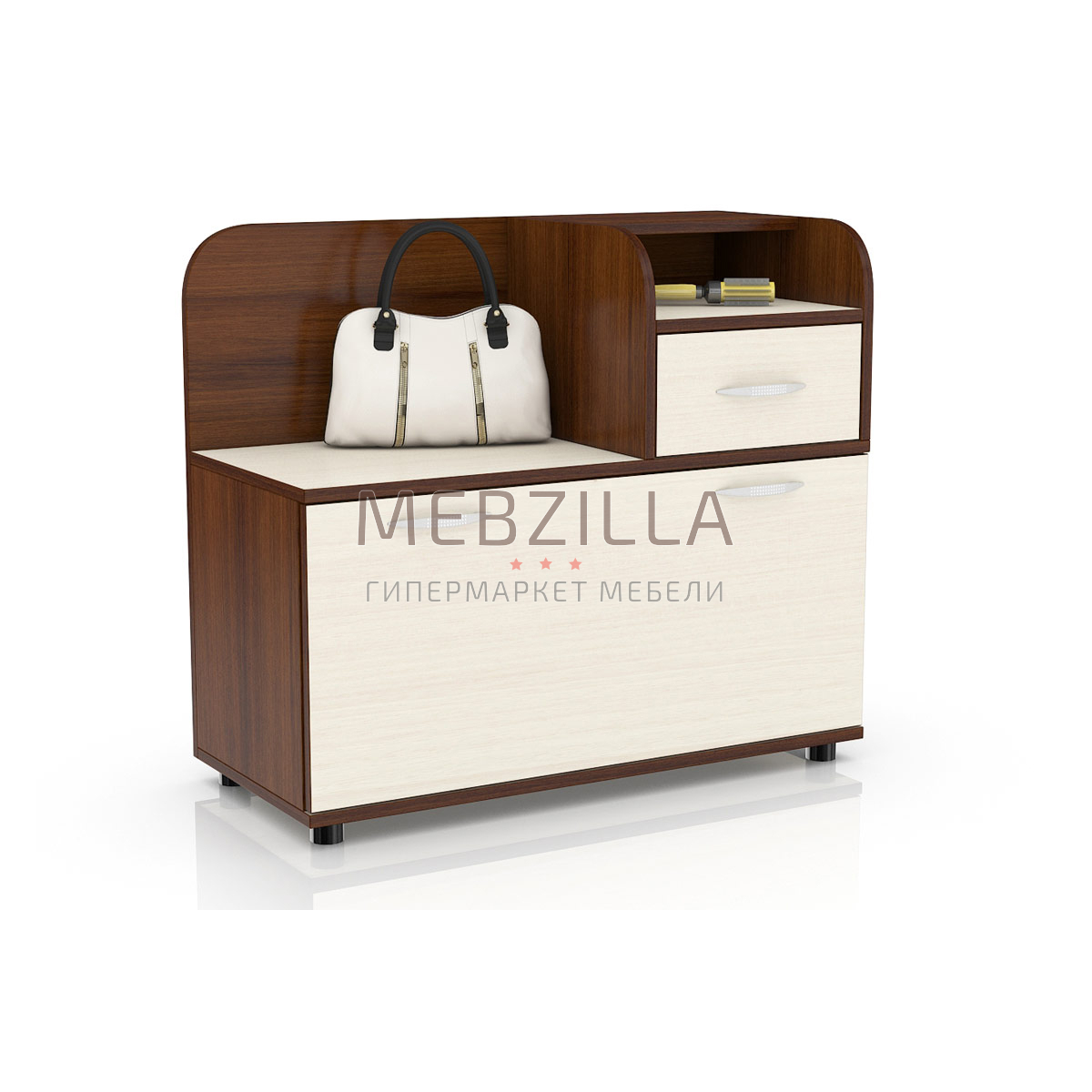 Красивая вместительная тумба для обуви П5 800 станет отличным выбором для обустройства прихожей. Состоит из двух закрытых ниш, спрятанных за откидной дверкой, выдвижного ящика и небольшой открытой ниши для мелочей над ним. Изготавливается в трех цветовых вариантах: венге/дуб, вишня/дуб, ясень шимо темный/ясень шимо светлый. Является одним из элементов набора мебели для прихожей П5.