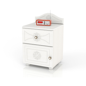 Стильная прикроватная тумба Онега ТП-1 выполнена в белом цвете, декорирована глубокой фрезеровкой и украшена рисунком, выполненным с применением технологии 3D. Состоит из выдвижного ящика и закрытой ниши. Выдвижной ящик оснащён роликовыми направляющими для лёгкого хода. Тумба позволяет разместить и хранить много нужных вещей в непосредственной близости от спального места. Эта прикроватная тумба будет прекрасным дополнением к вашей спальне. Является одним из элементов набора мебели Онега.