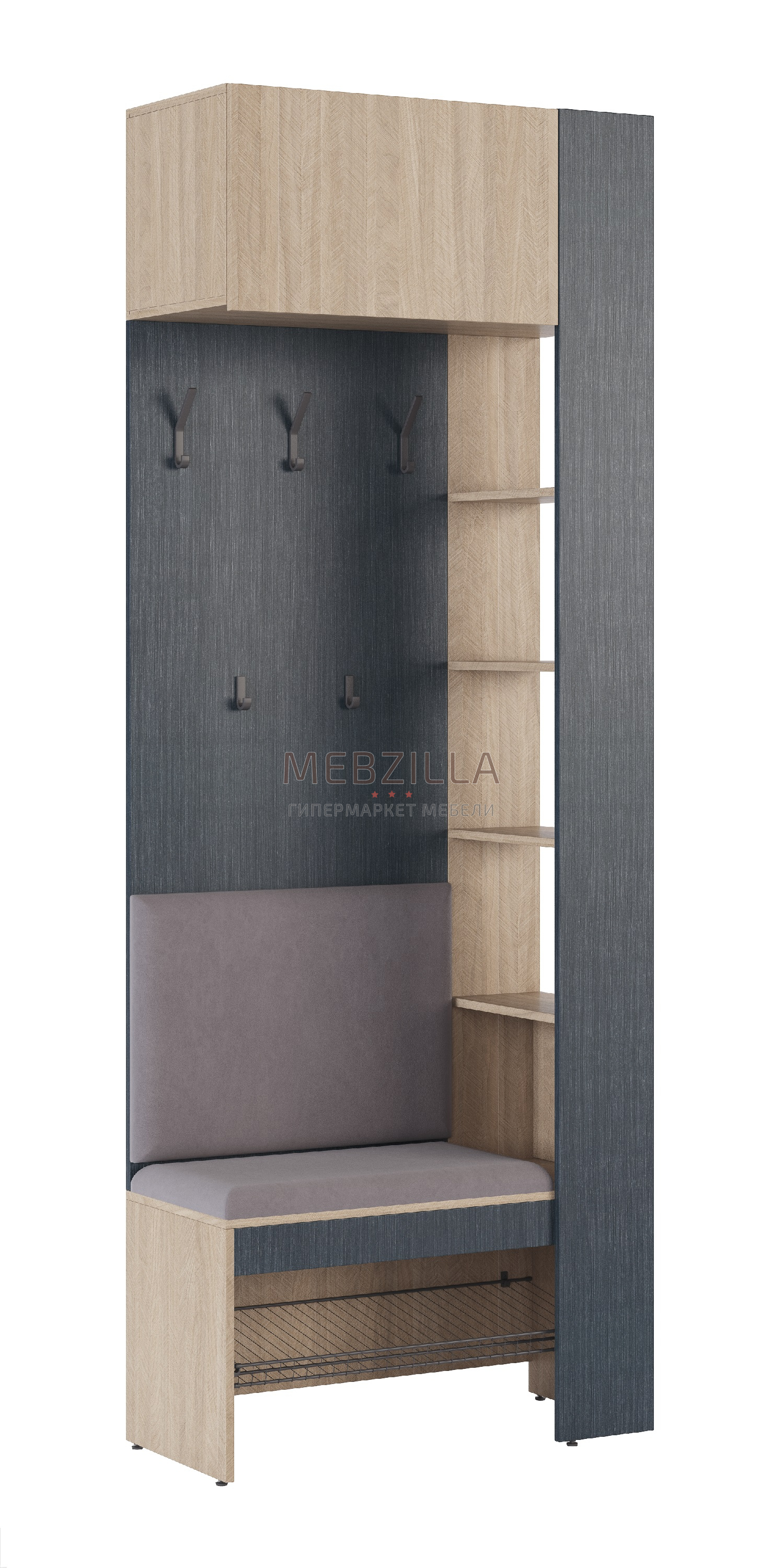 Если Вы обладаете компактной входной зоной, в которой необходимо организовать грамотное хранение верхней одежды и 'ходовой' обуви, - комбинированная вешалка Палермо создана специально для Вас! Модуль оснащен мягким сиденьем, закрытой полкой-антресолью, открытой вешалкой с крючками, комплектом открытых полок и сеткой для обуви. Вашей одежде, сезонным аксессуарам и той обуви, которую Вы носите чаще всего, точно найдется место.