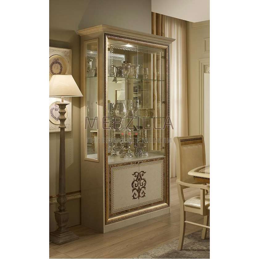 Витрина двухдверная Анита - вместительная и функциональная. Имеет две закрытые стеклянные широкие полки, на которых удобно разместить все необходимое. Глубокая, вместительная ниша. Закрытые стеклянные полки можно дополнительно подсветить освещением, что придаст комфорта и стиля. Элегантности витрине придают декоративные элементы и красивая роспись на фасаде, а также утонченные стильные ручки. Модель выполнена в классическом стиле. Декоративные элементы создают уникальный стиль вашей мебели. Очень функциональная и практичная, идеально впишется в интерьер.