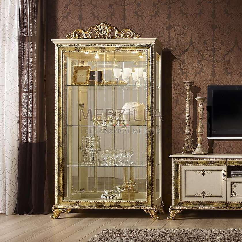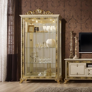 Витрина двухдверная из комплекта «гостиная Катя». Стеклянные дверцы за которыми зеркало и три стеклянные полки. Также в верхней части присутствует освещение. Модель выполнена в классическом стиле. Декоративные элементы создают уникальный стиль вашей мебели. Очень функциональная и практичная, идеально впишется в интерьер.
