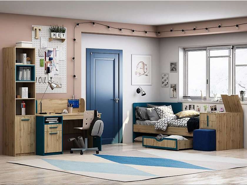 Уникальность коллекции заключается в добавлении оттенка цвета бриз, чтобы придать набору для детской свой неповторимый стиль. При изготовлении используются только качественные и проверенные материалы. Применён ЛДСП, который по безопасности соответствует классу эмиссии Е1. Вся фурнитура металлическая и отличается длительным сроком службы, все ящики оснащены шариковыми направляющими полного выдвижения. Элементы серии гармонично сочетаются и помогут обустроить детскую или молодёжную комнату стильно и с комфортом.