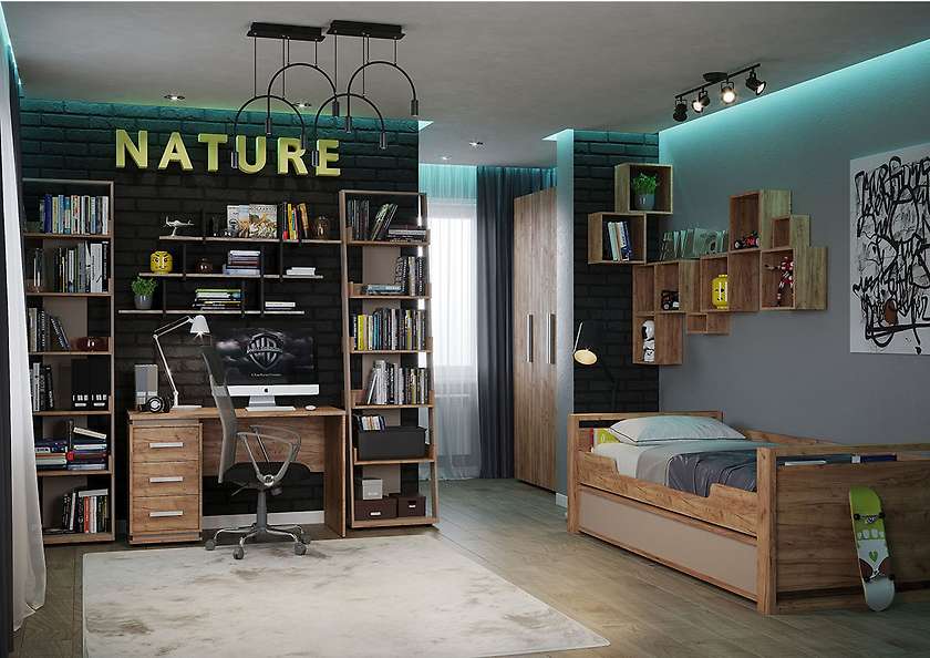 Особенности данной серии: выполнена в декоре Дуб Табачный и Гаскон Пайн, с декоративными черными вставками, применены трапециевидные геометричные ручки, используются стеклополки из тонированного стекла. По периметру фасадов для аккуратного вида и долговечности установлена кромка ПВХ толщиной 2 мм. Динамику коллекции создают декоративные вставки. Изделия гармонично входят в интерьер, особенно выигрышно смотрятся в комбинации из нескольких моделей серии, а качественные и современные материалы, используемые при создании линейки Nature, станут залогом надежного и долговечного использования.