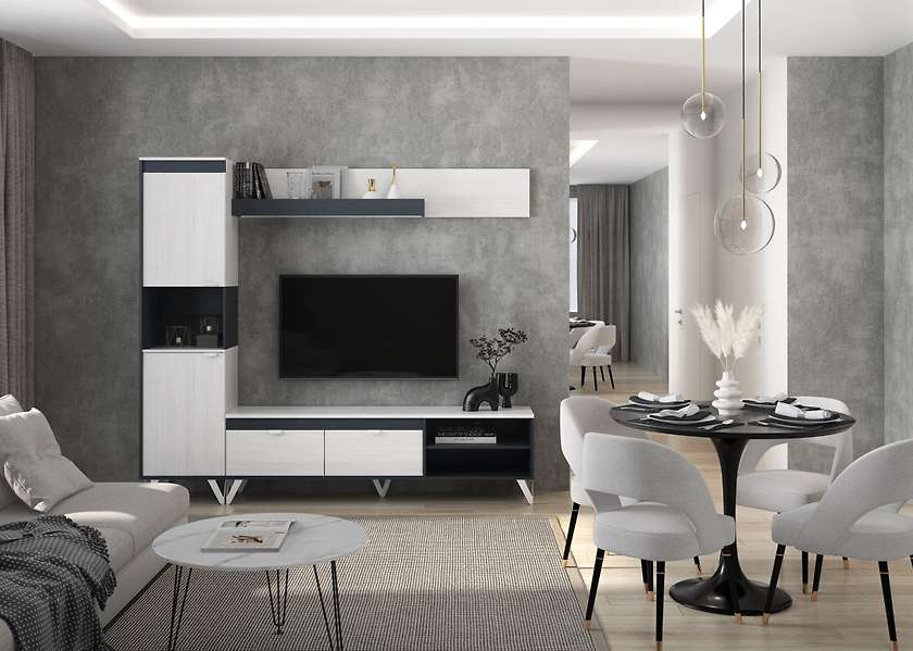Гостиная "Винтер" - это новая модульная серия производства мебельной фабрики "Алисия". Выполнена в сочетании новых декоров ЛДСП "Винтерберг" и "Рейн Морион". "Винтерберг" - выбеленная древесина с темно-коричневыми прожилками. Оригинальная комбинация в мебельной коллекции будет с темными цветовыми решениями и каменными поверхностями. "Рейн Морион" - имеет антрацитовый оттенок с металлическим отблеском и глубоким тиснением "Ферро" на поверхности ЛДСП и кромки. Декор "Рейн Морион" создан в стиле Хай-Тек, такой же элегантный и холодный.